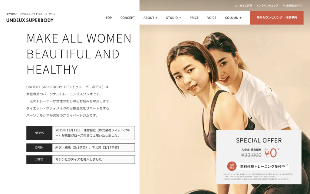 UNDEUXSBODY|女性の「なりたい」を叶える専門ジム