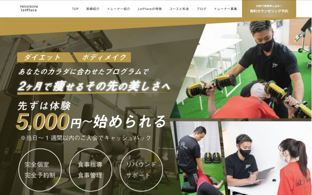 名古屋のパーソナルジムの多くは無料カウンセリング・無料体験トレーニングを実施しています。ただし1st Placeのように有料体験(5,000円)の形式を取るジムもあります。