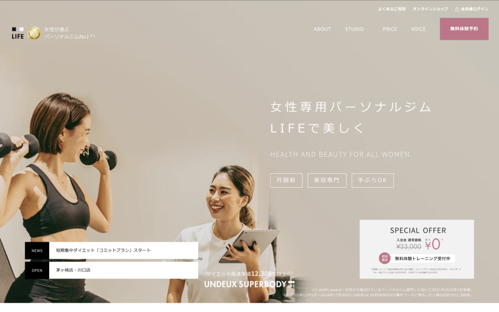 「脚痩せ・美尻・産後ダイエット。女性のボディメイクに完全特化」